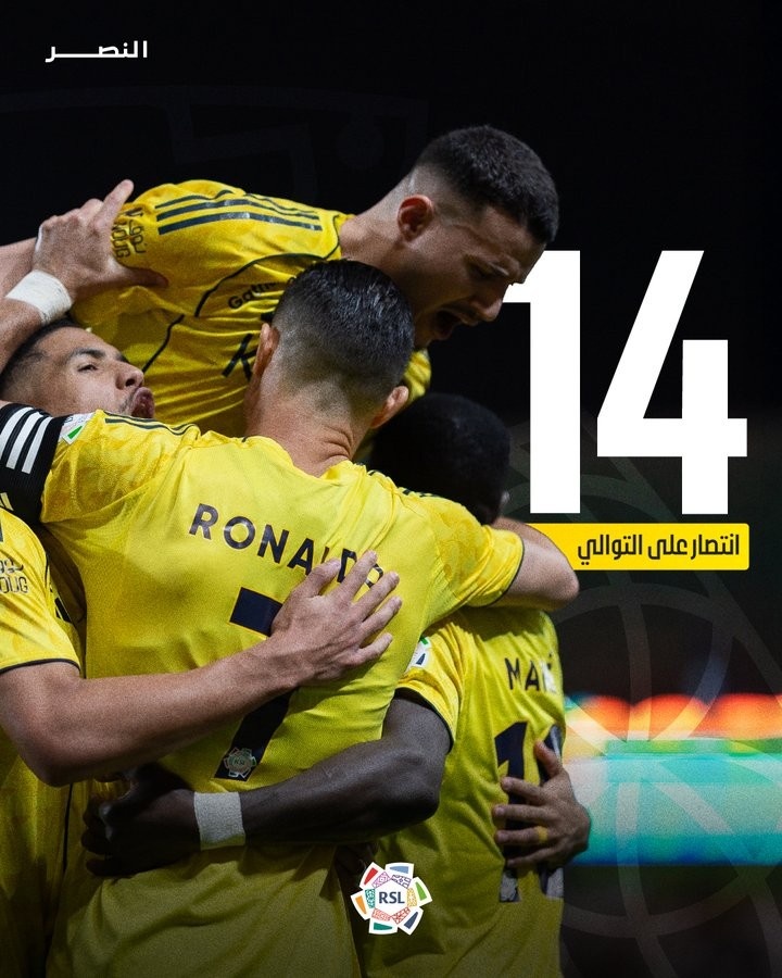 数据统计显示,利雅得胜利打出了一波联赛14连胜,这也刷新了队史最长连胜纪录。